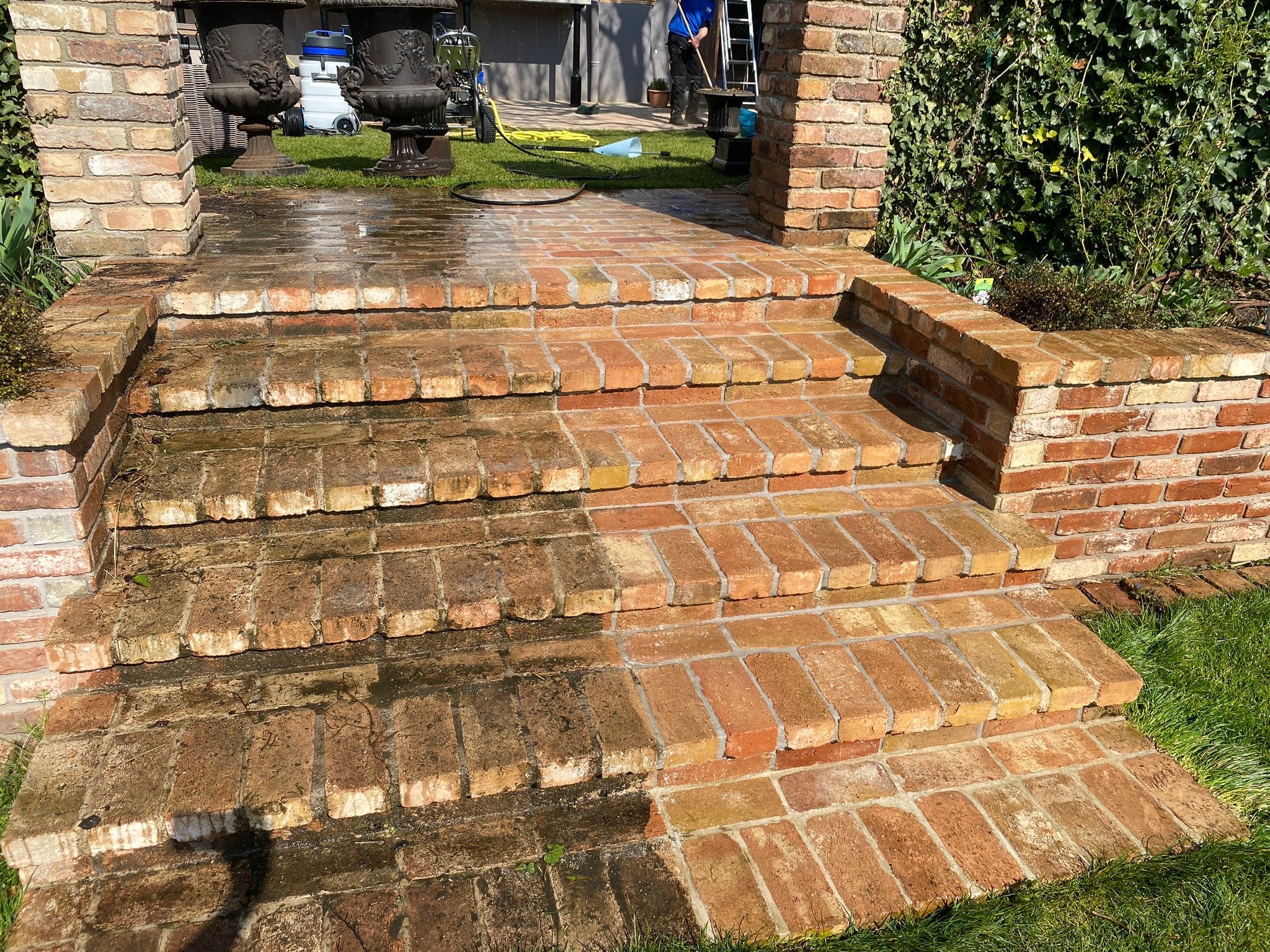 Im Außenbereich kümmern wir uns um Gehwege, Hofflächen, Terrassen, Garageneinfahrten und Parkplätze, die durch Wettereinflüsse und nahe Bepflanzungen Grünbelag, Moos und Verwitterung sowie Rutschgefahr aufweisen. Pflastersteine und Betonflächen bearbeiten wir maschinell mit Reinigern. Danach imprägnieren wir die Bodenfläche für einen Schutz gegen schnelle Wiederverschmutzung mit bis zu drei Jahre Haltbarkeit. Unkraut zwischen Pflastersteinen entfernen wir bei der Steinreinigung mit.